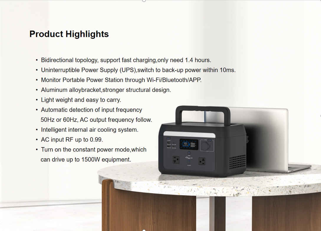 随着我们不断突破可再生能源解决方案的界限,我们的 1000W 便携式电站不仅象征着创新,更体现了我们致力于提供可靠且多功能的能源解决方案。该产品的静音运行、先进的安全功能和耐用的构造,都使其成为市场中的首选。选择这样的电站,您就选择了一条可持续生活之路,并确保自己为生活中的所有冒险做好准备,无论是计划内的还是意外的。拥抱太阳能的潜力,重新定义您的离网生活方式,保持连接,无需妥协。